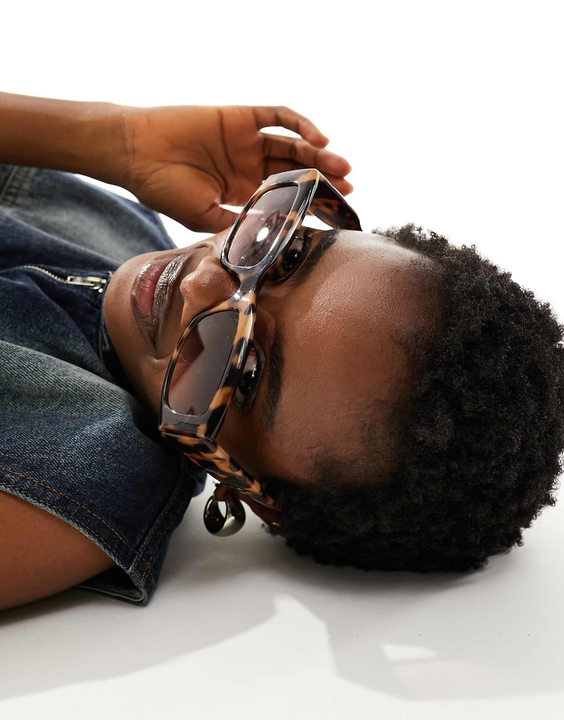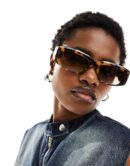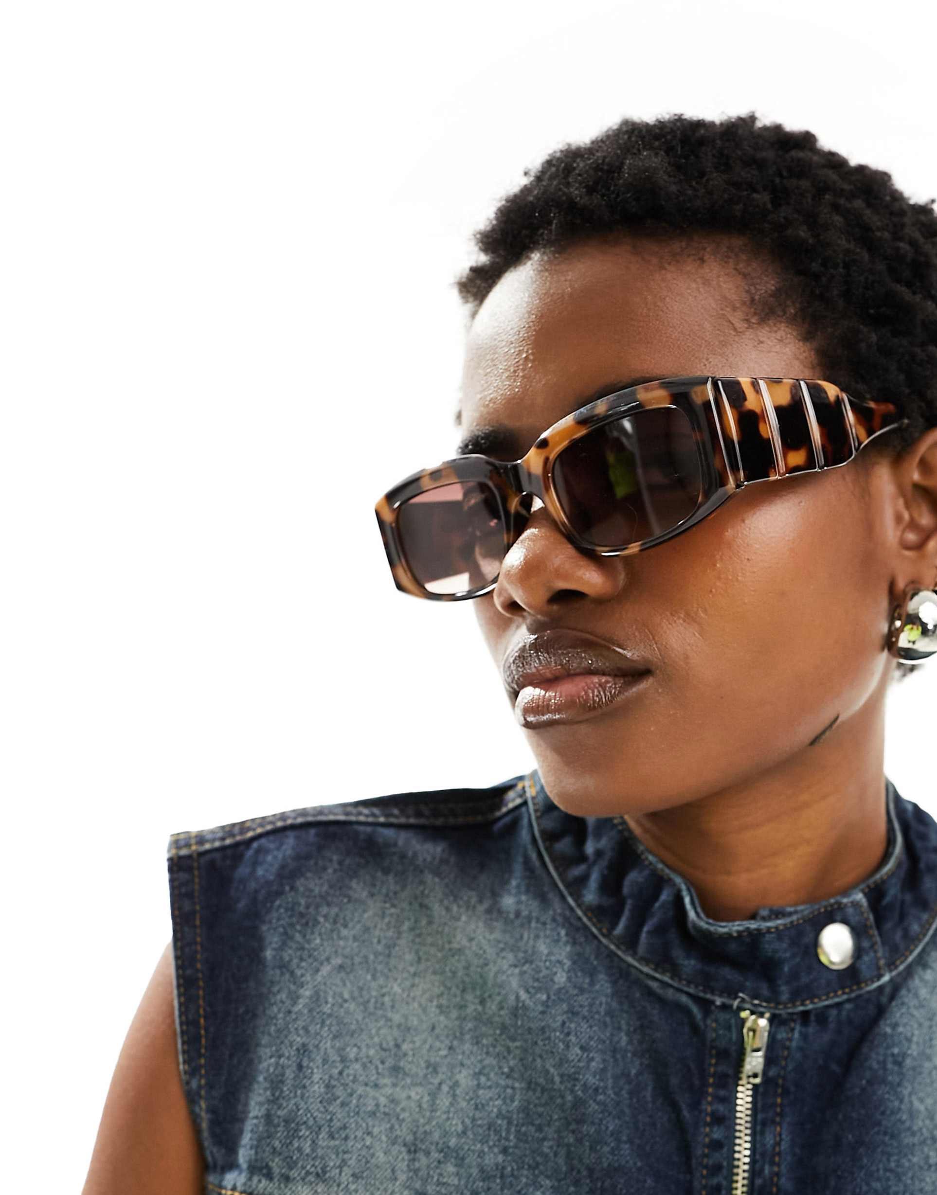 ASOS DESIGN mid square sunglasses feature a classic angular, thick-framed design with prominent temple detailing, such as wide arms or metal accents.