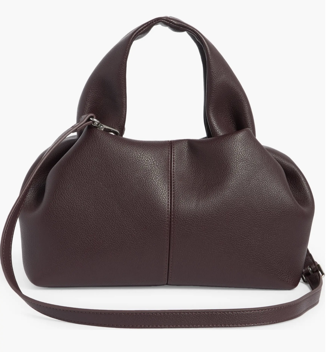 This bag often feature soft silhouettes with hidden pleats and include an optional crossbody strap for versatility.