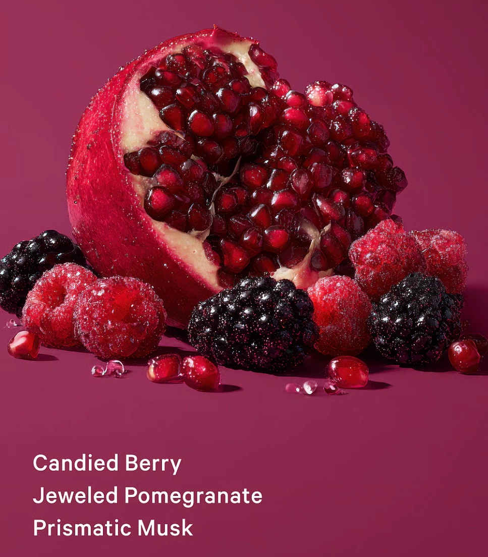 - Top notes: Sparking pomegranate, frosted blueberry