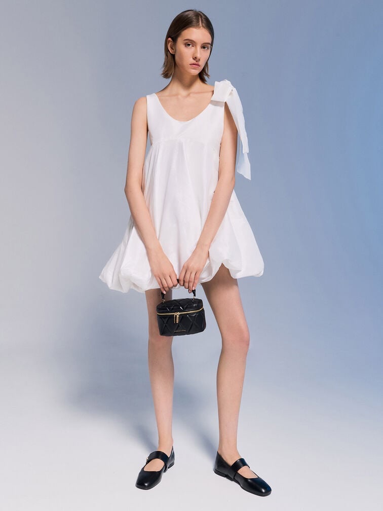 The petite shape and classic quilted design of this Arwen bag make it ideal for special occasions and evening dinners. Inspired by compact vanity cases, this bag features a top handle and a detachable braided chain strap, offering versatile carrying options.