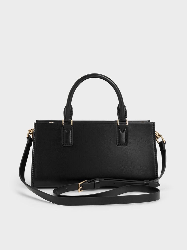 This Charles & Keith Kerry bag features a structured silhouette, double top handles, and a detachable keychain.