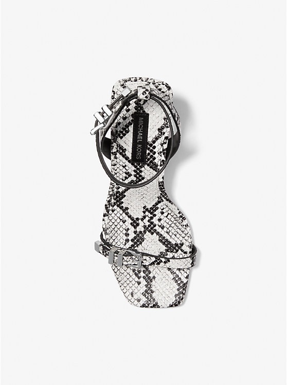 Our Darrington sandal combines a sleek silhouette with bold snake-embossed leather to create a head-turning look. Set on a stacked heel, this day-to-dark style is detailed with polished hardware for a touch of shine.